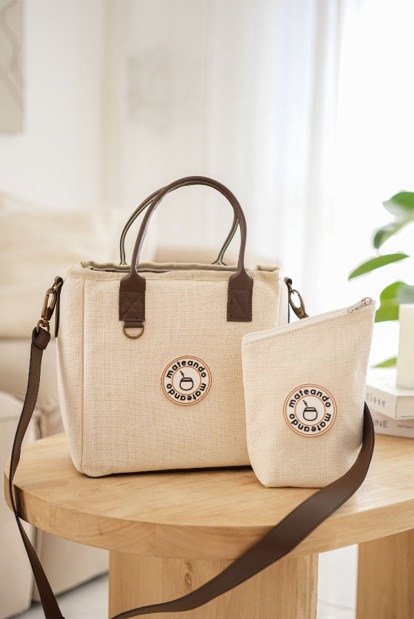 La Matera Capri redefine el bolso matero tradicional con un diseño tipo tote en rafia tejida, logrando un look noble y artesanal que combina con todo. Es la compañera ideal para el auto, viajes o salidas, manteniendo cada elemento siempre en su lugar.