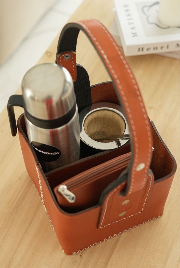 Espacio para Accesorios: Además del mate y el termo, la matera ofrece un compartimento extra que puede adaptarse para guardar una yerbera, una botella o cualquier accesorio que necesite.